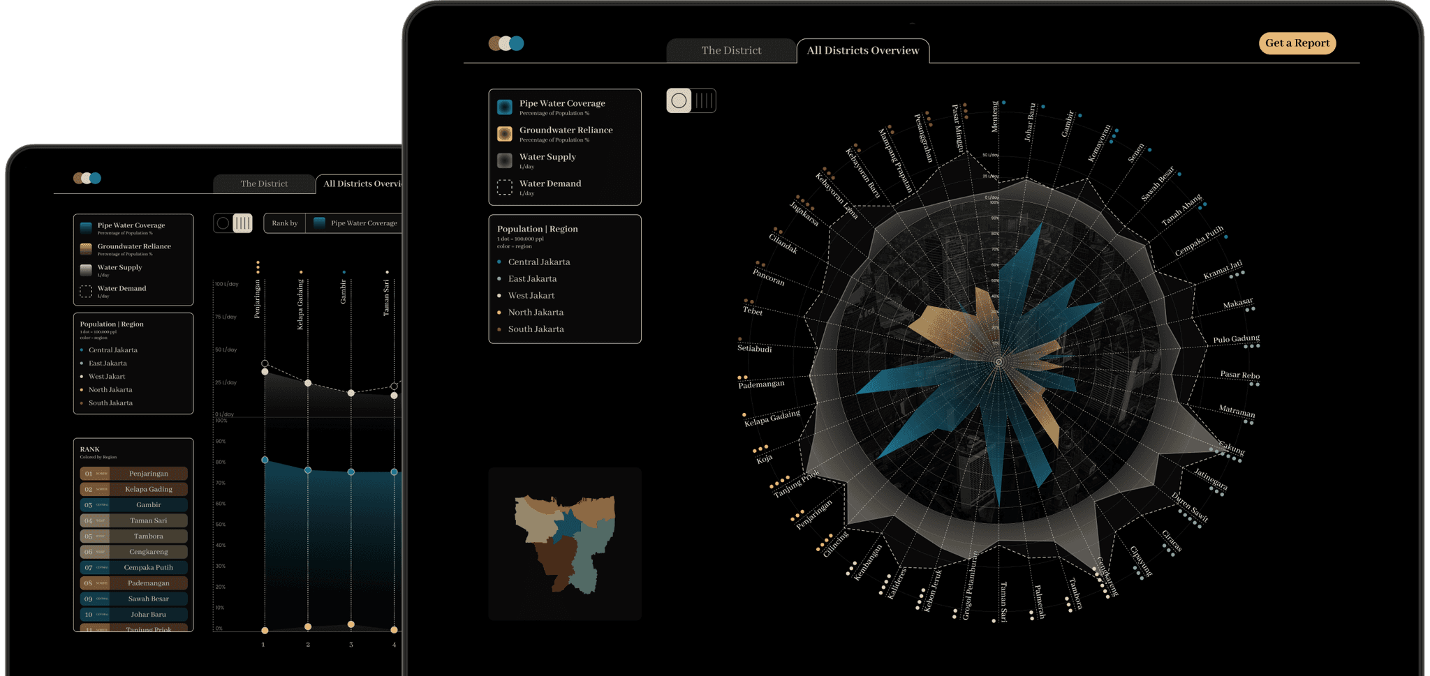 Provided easy access to 20+ data points on water distribution, consumption, and risks across 44 districts and 267 subdistricts